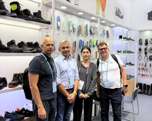 在工具类展区,安粮在常规安全鞋产品基础上,新增劳保手套、多功能剪刀、冰爪、反光材料等多款新产品,全面覆盖户外安全防护场景,凸显“专业性”与“全面性”双重优势。为让客户直观感受产品品质,展区采用原木色层板与洞洞板灵活组合的装修设计,方便客户触摸、体验产品的材质、工艺与功能,如拉扯劳保手套的耐磨度、体验多功能剪刀的剪切效果、查看反光材料在模拟黑暗环境下的警示亮度。目前已有来自法国的户外用品品牌商提出样品寄送需求,另有来自智利的的安全防护设备经销商明确表达长期合作意向。