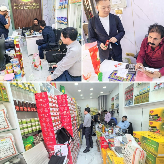 展会结束后,团队赴迪拜木须巴扎传统市场开展实地调研,走访近十家终端店面,梳理当地番茄制品销售渠道、价格体系等市场格局,同时开展地推工作,面对面收集终端商户反馈。