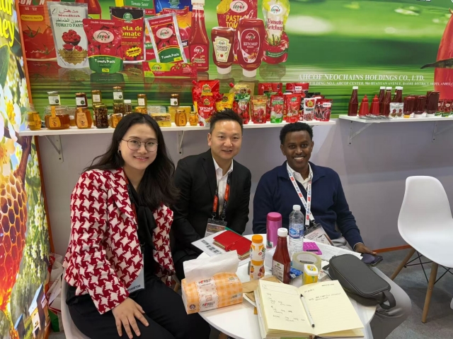 步入2026年,安粮新链的海外市场布局持续向纵深推进,将目光投向中东及北非市场,精准切入食品消费赛道。在1月的迪拜海湾食品展上,安粮新链高效对接来自阿联酋、沙特、埃及等数十个国家和地区的专业客商,成功挖掘大批重点意向客户,番茄酱产品率先实现订单落地,更与也门客户达成定制化合作共识,敲定立袋、平袋番茄酱试单合作,顺利打开中东及北非食品市场的入口,为快消品类的全球化布局奠定基础。